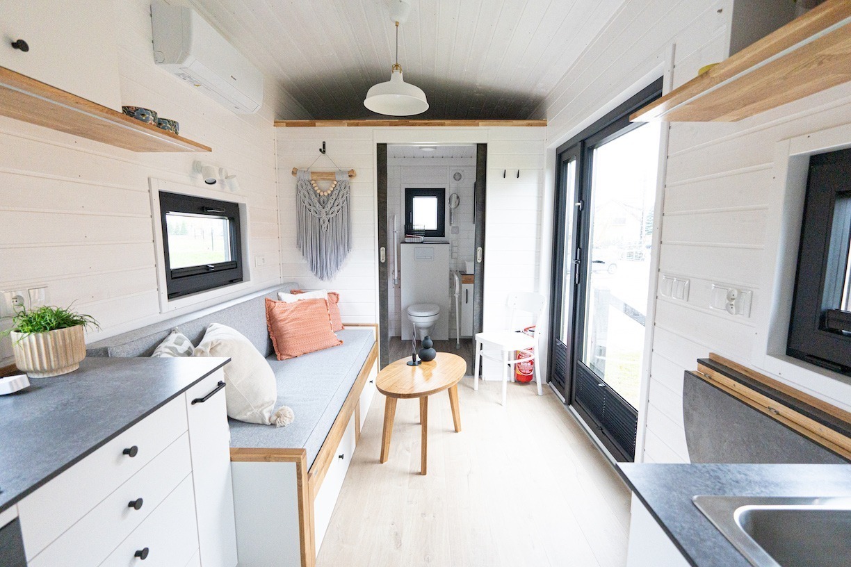 Een Tiny Wonder tiny house voldoet standaard aan al deze vereisten: elektrische boiler van 50 liter, instapdouche met watervrije designwanden, badkamerventilatie, rooksensor en brandblusser inbegrepen.